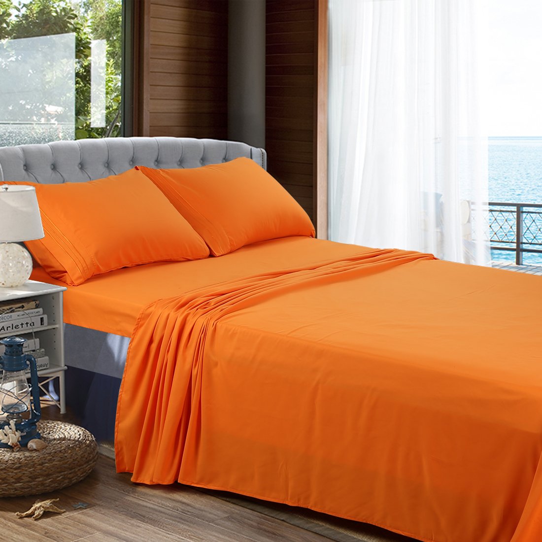 Orange Sheet Set: 1000 tc egyptian cotton bedding 4 pcs sheet set orange color.